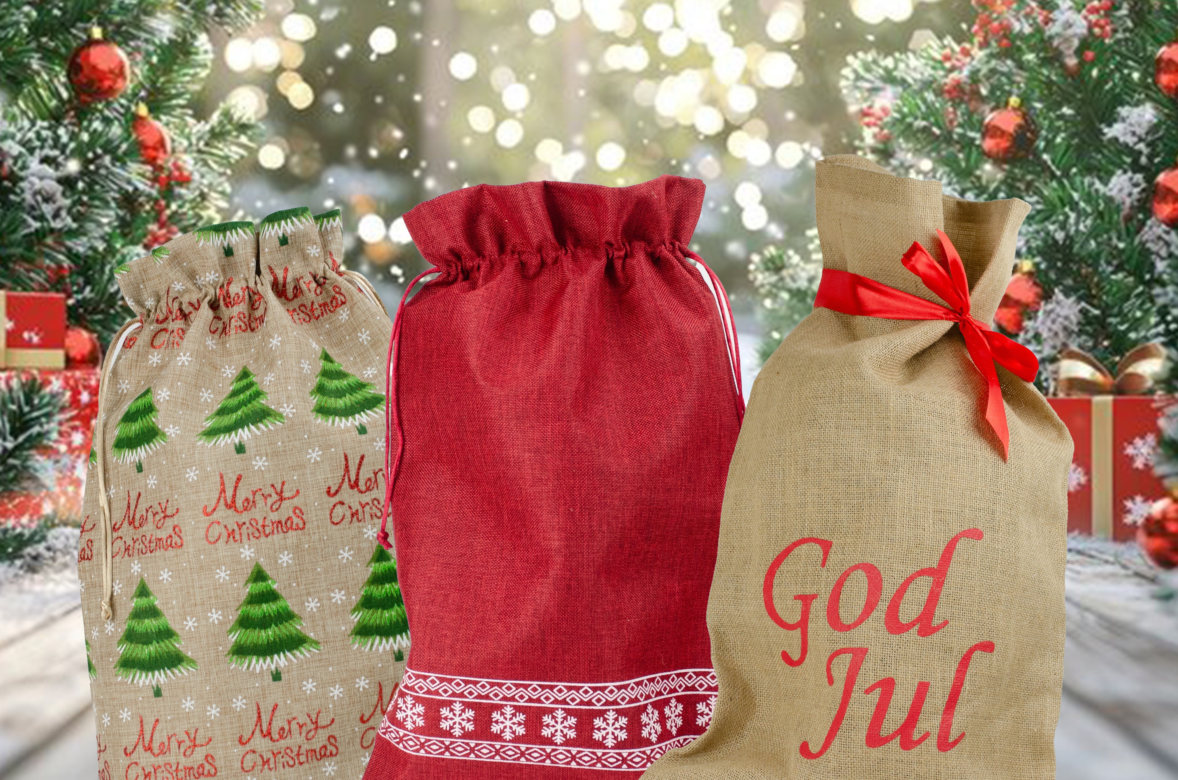 Julsäck | Dansande tomtar | 17 x 30 cm | Jutesäck