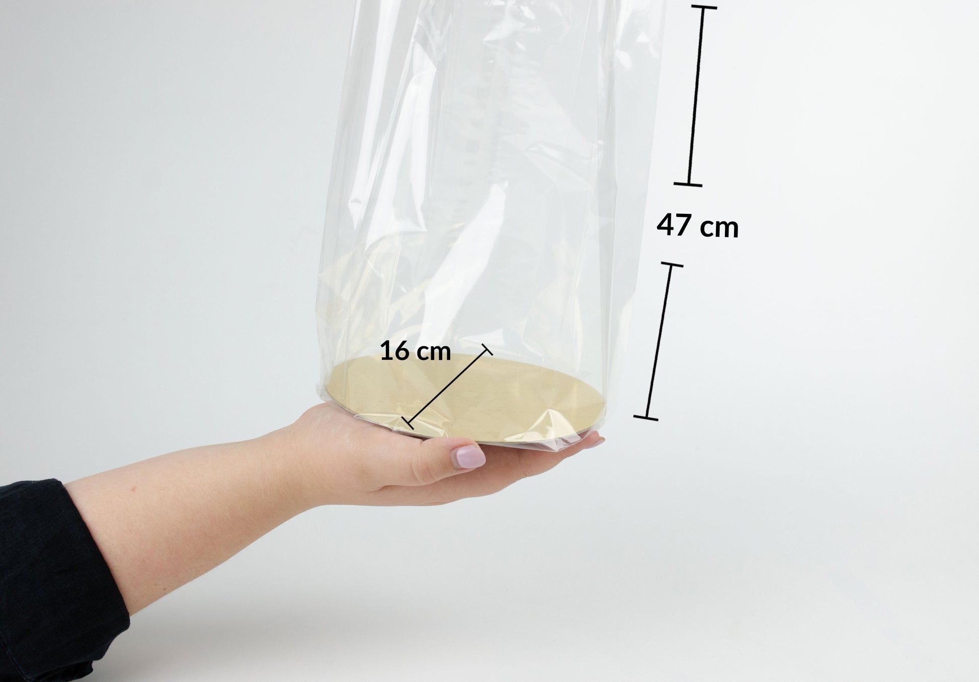 Cellofanpåsar med guld bottenplatta Ø16×47 cm | Transparenta plast